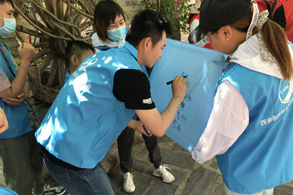 這里是距離城市50分鐘車程的終南山寨,一個適合爬山游玩的好去處。隨著山勢逐漸高聳,天氣逐漸涼爽,員工熱情達(dá)到頂峰下到達(dá)終點。在簡單修整后,教練安排下,先宣讀注意事項和強調(diào)安全,后進(jìn)行隨機分組,布置任務(wù)。
